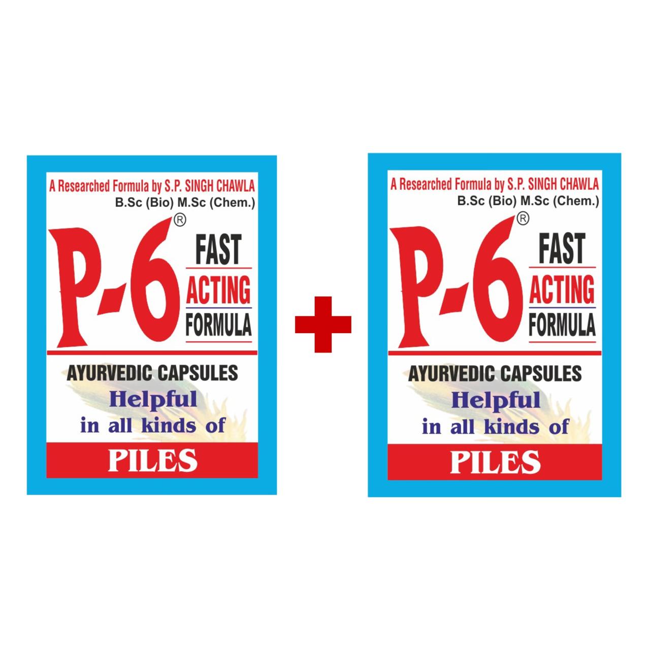P-6 FAST ACTING FORMULA is a new advanced potent innovated formula to cure speedily all kinds of piles and is prepared from judiciously chosen herbs & bhasams like Rasont, Retha. Neem Giri. Trifla, Guggal (shudh), Mochrasa, Shankha bhasam & Phitkari (Shudh). P-6 Fast Action Formula is prepared by concentrating the formulation by technically advanced method & powder is made sterile before filling by high velocity electrons process called “BUNNY’S PROCESS” (The intellectual property rights are under consideration).